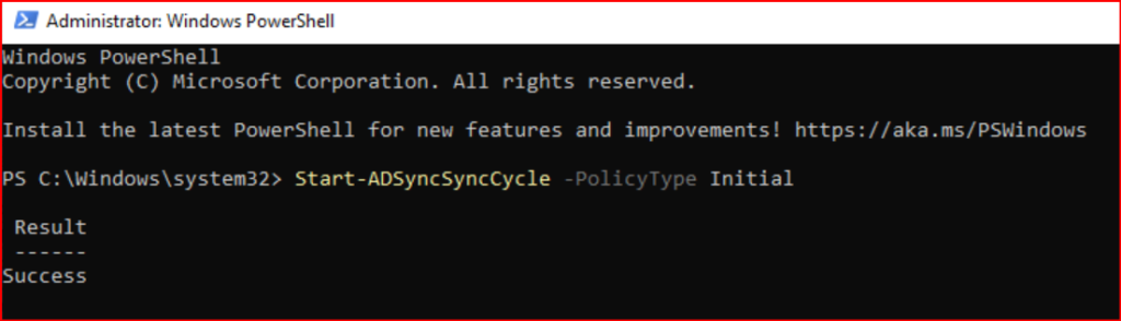 Start-ADSyncSyncCycle -PolicyType Initial