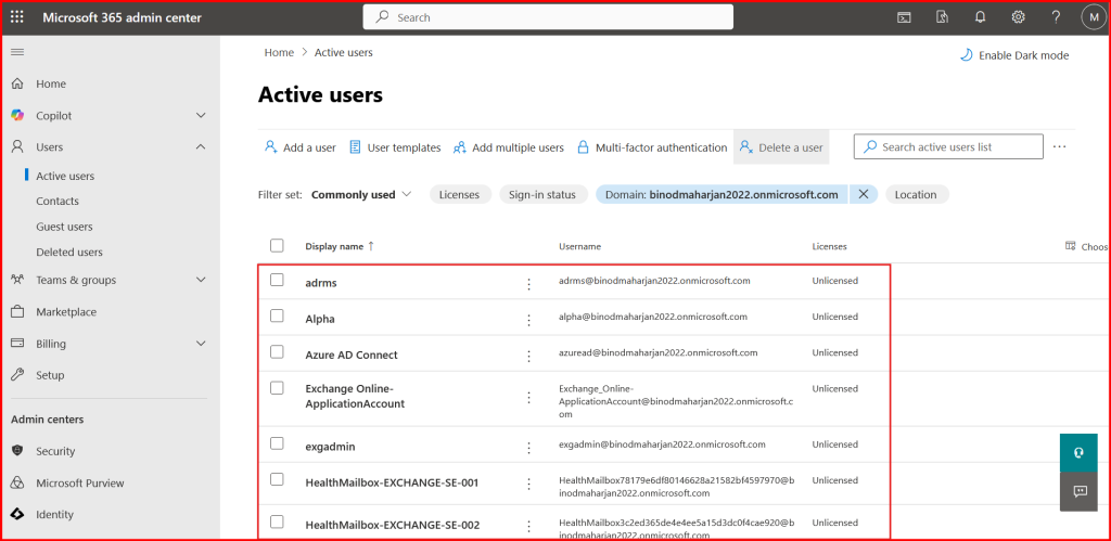 - Look for your on-prem AD usernames