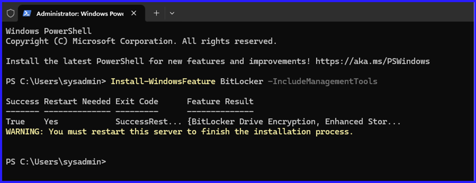 Install-WindowsFeature BitLocker -IncludeManagementTools