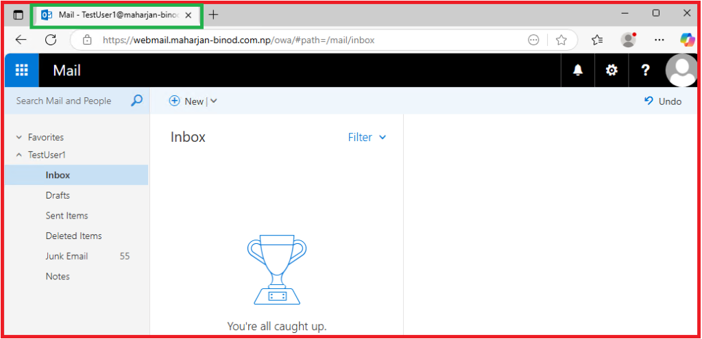 Once a user logs in, Exchange redirects them to the authenticated mailbox interface.