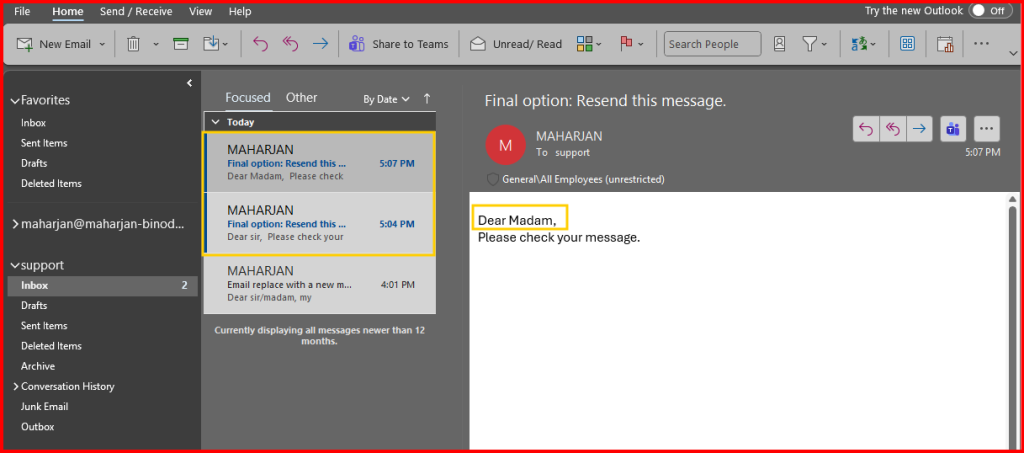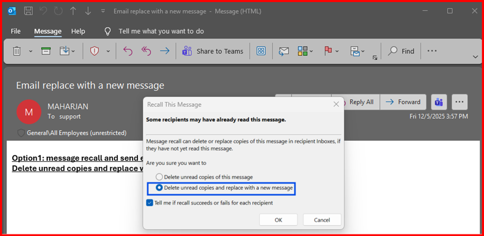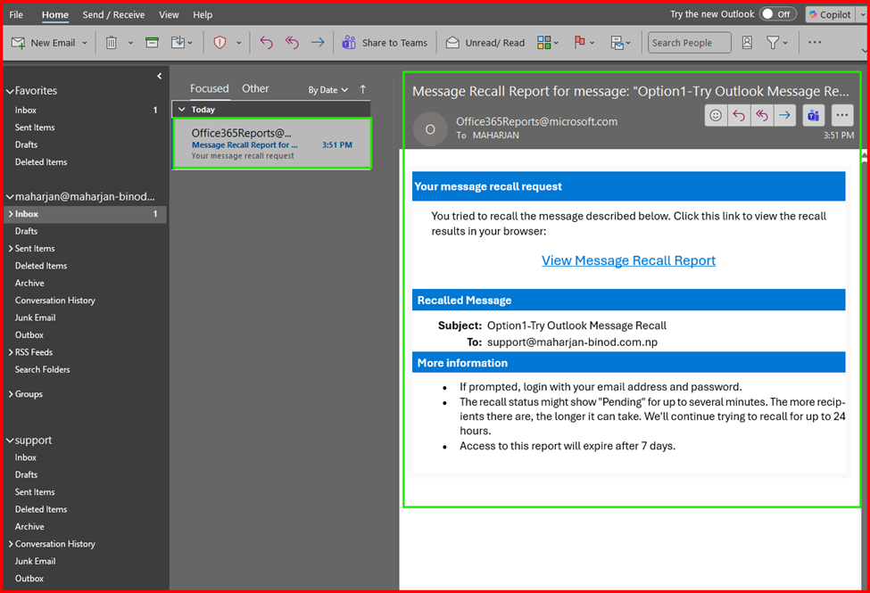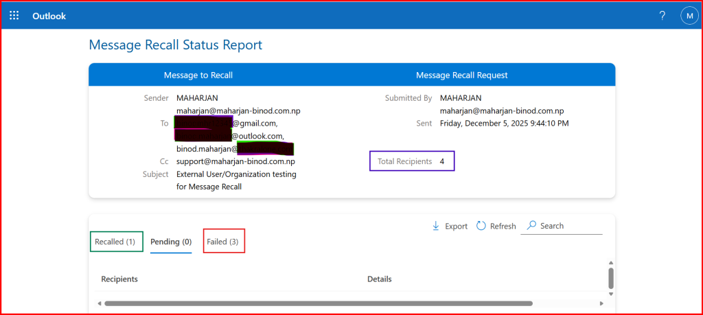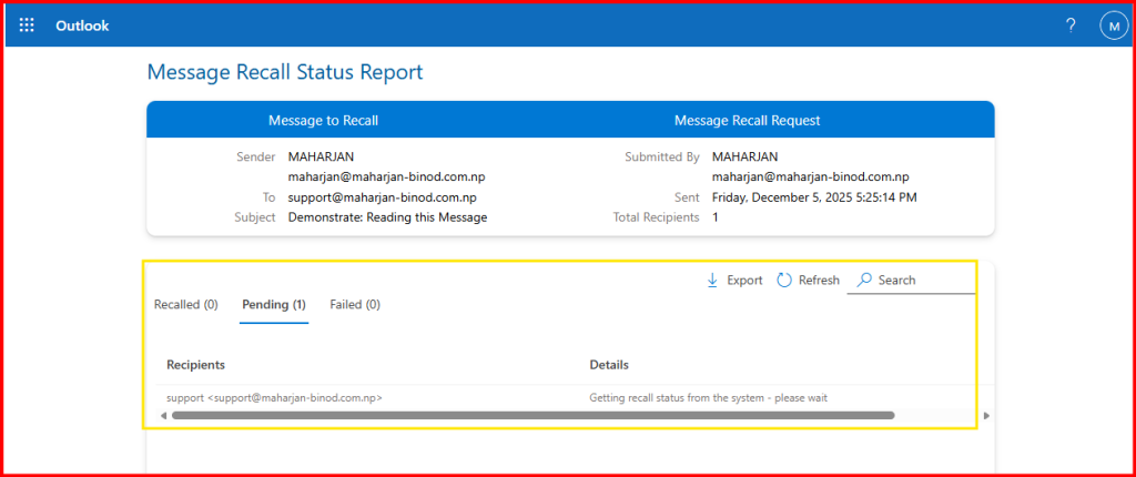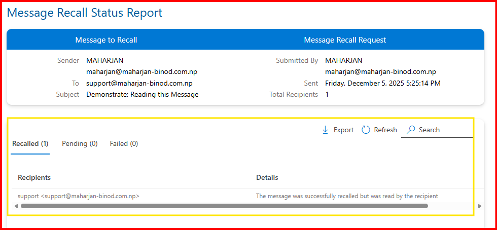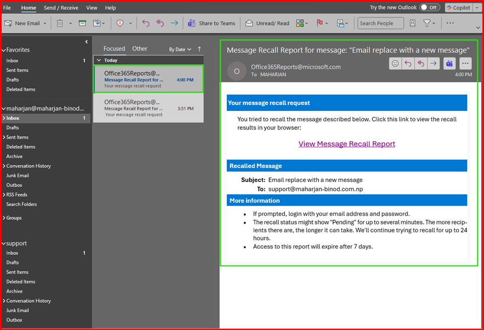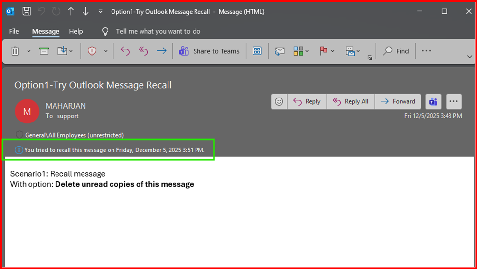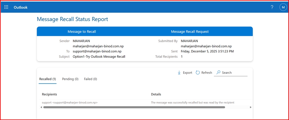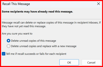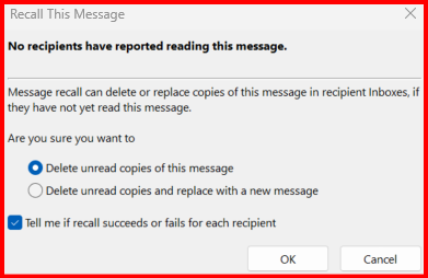 - Recall failed (if the email was already opened or the system doesn’t support recall)