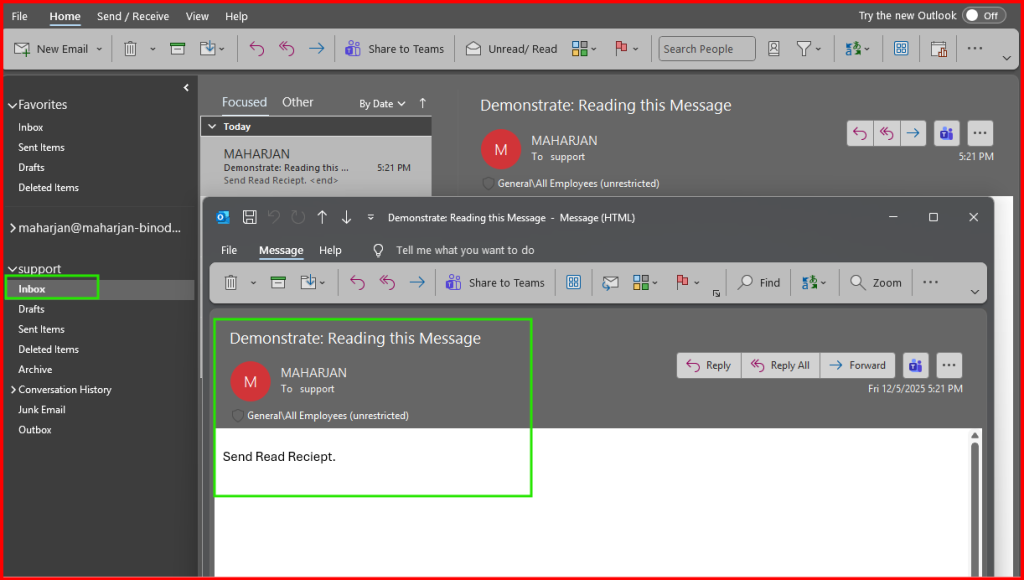 🟦Scenario1 Demo: The Email Was Sent Internally (Inside Your Organization)