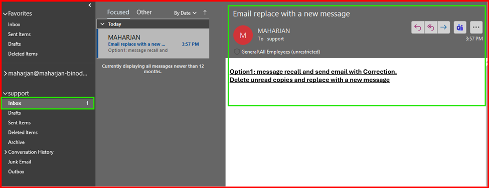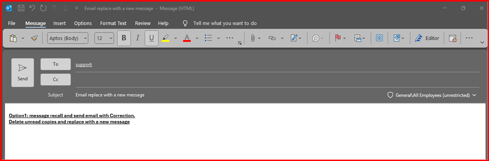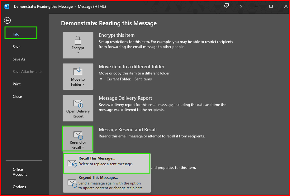 | Recall This Message | Tries to delete the original email from recipient’s inbox | Doesn’t work externally or after message is read |