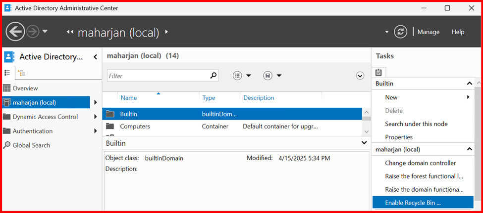 π₯οΈ Method: Enable via GUI (Active Directory Administrative Center)