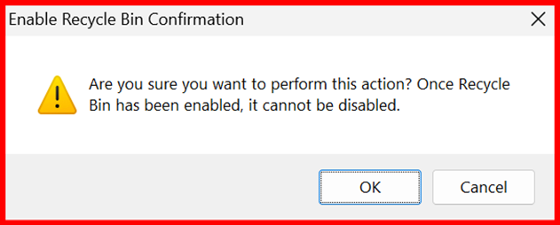 - Confirm the prompt β the Recycle Bin will be enabled.