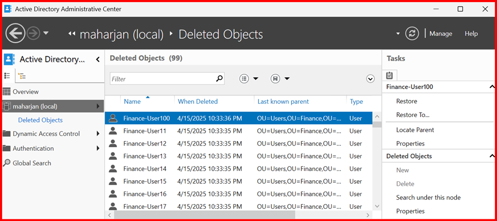 If any objects accidently or intentionally deleted from AD Console, I can restore from Recycle Bin Deleted Object container.