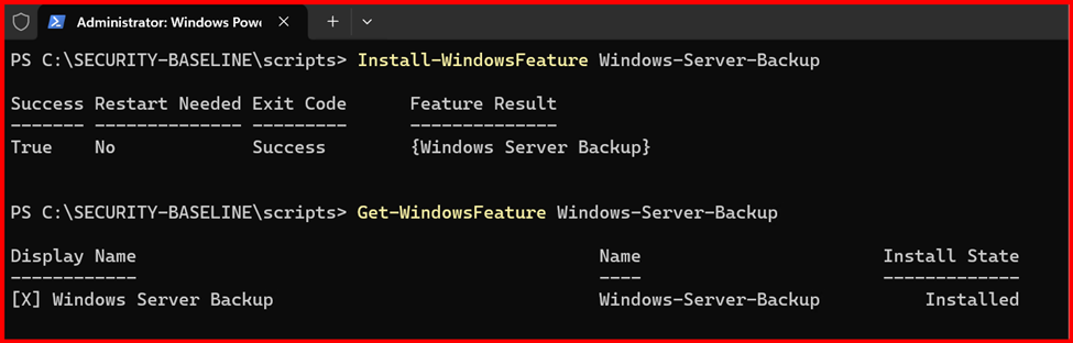 - Under Features, check Windows Server Backup and install it.