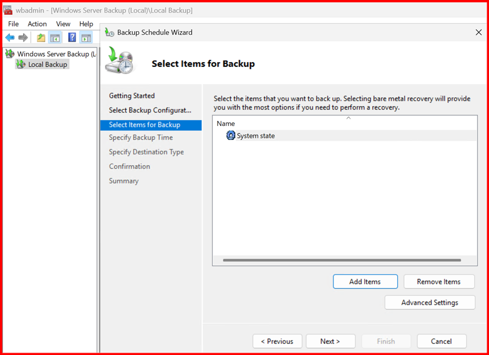Option1: Perform using Windows Server Backup (GUI)