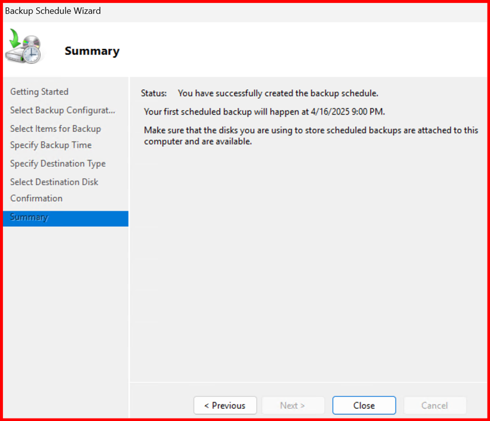 At schedule date and time, Backup completed.
