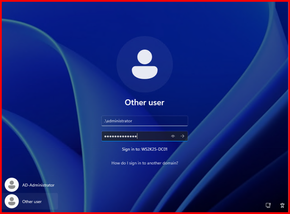 2. Log in with DSRM credentials (set during domain controller setup)