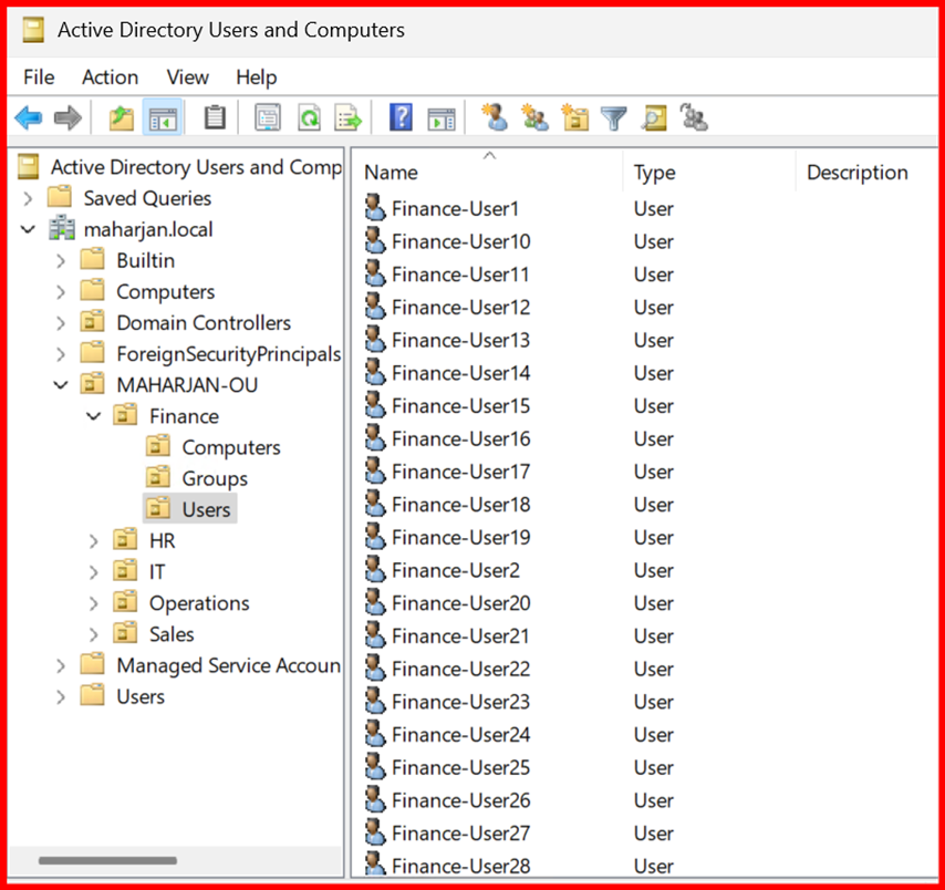 - In ADUC, navigate to the Users container or your custom Organizational Unit (OU).