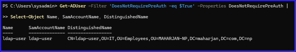 The Vulnerability: Some accounts have the attribute DONT_REQ_PREAUTH enabled. This means the Domain Controller doesn’t check if the user is who they say they are before sending back data that contains a piece of the password hash.