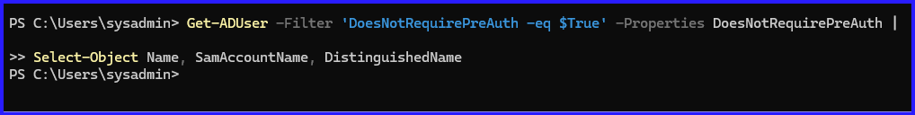 Get-ADUser -Filter 'DoesNotRequirePreAuth -eq $True' -Properties DoesNotRequirePreAuth |