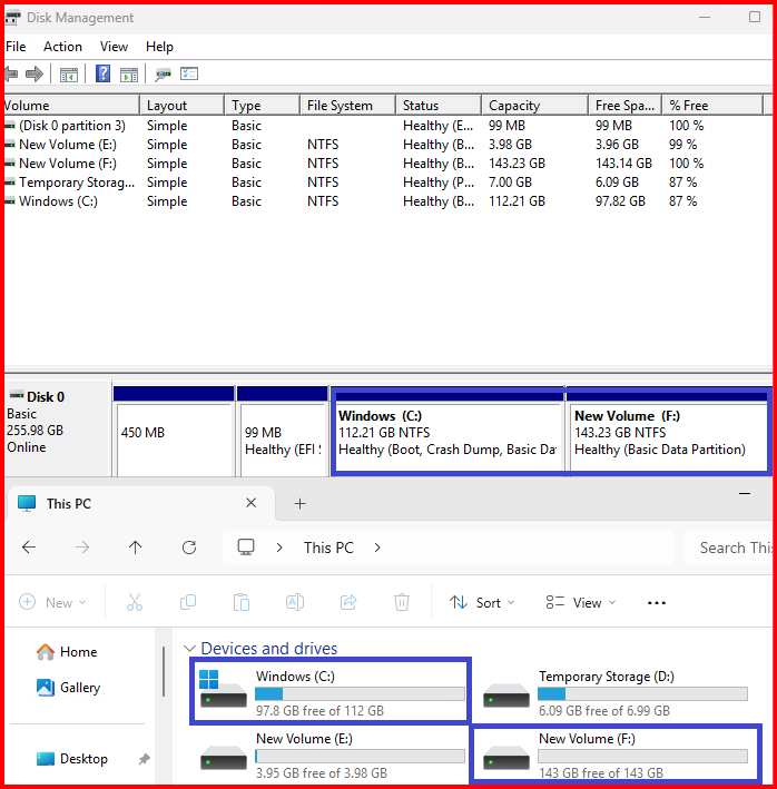 - You get an additional logical volume (e.g., F:) for storing files