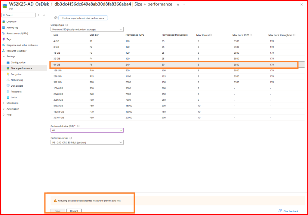 OS Disk cannot be reduced and is not supported.