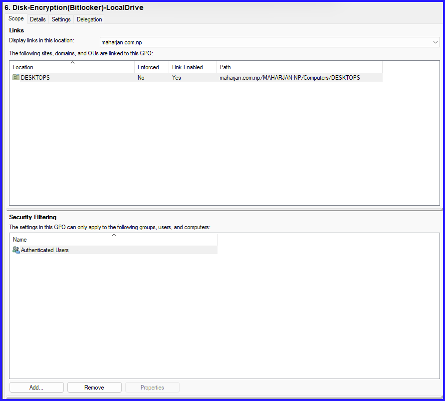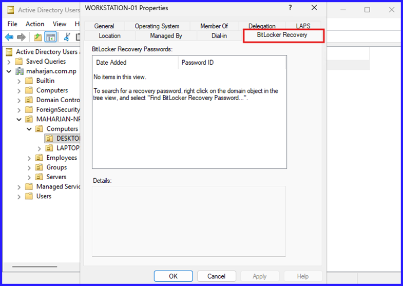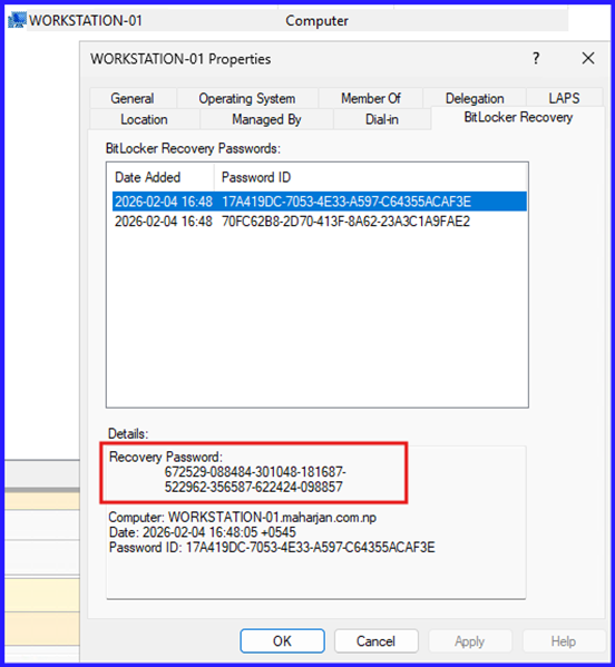 Step6: Ensure BitLocker Recovery Password Shown in Active Directory.