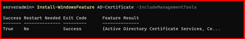 Install-WindowsFeature AD-Certificate -IncludeManagementTools