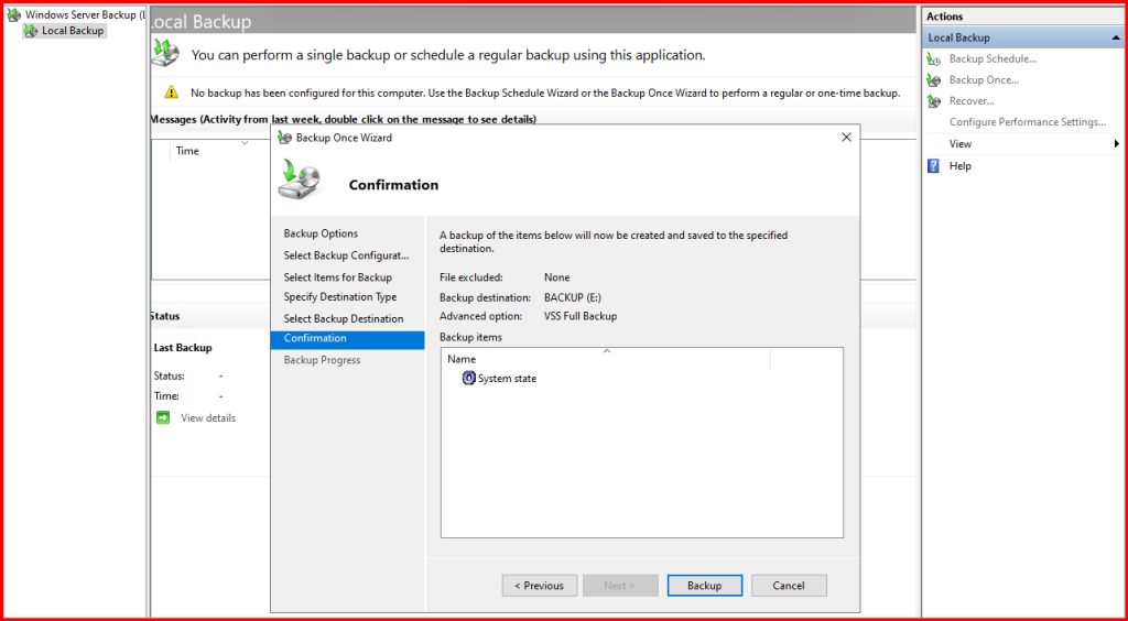 Method 1: Backup Using Windows Server Backup
