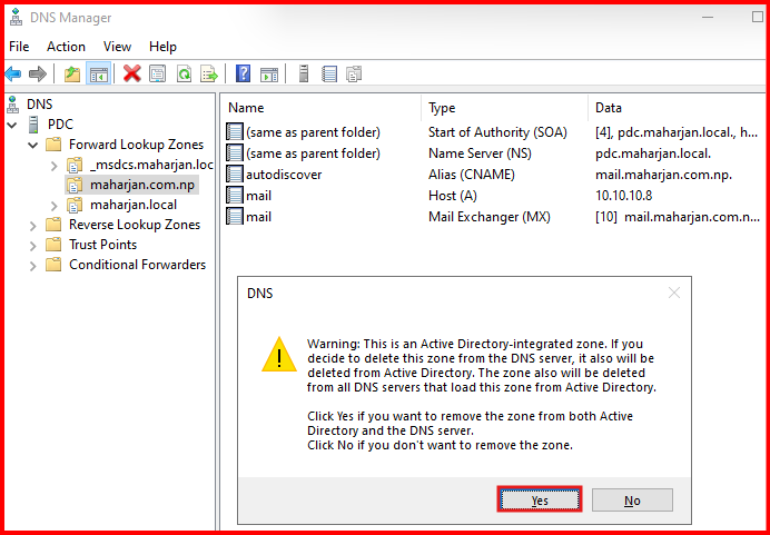 First: Let’s assume your DNS zone file corrupted or any of the records deleted. In my lab, i already taken backup of DNS and i will delete myself for testing purpose.