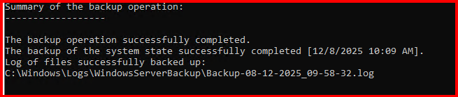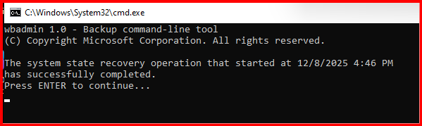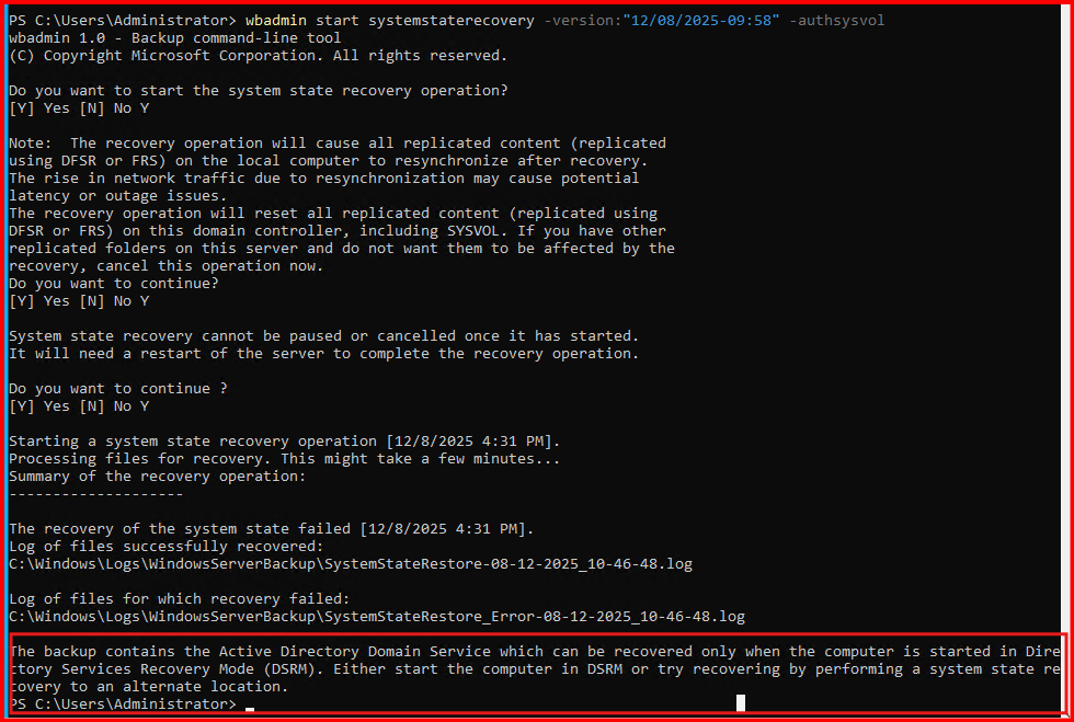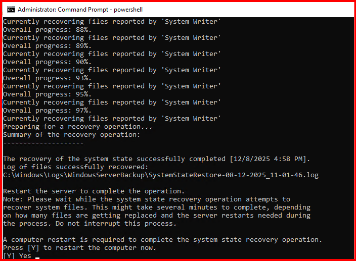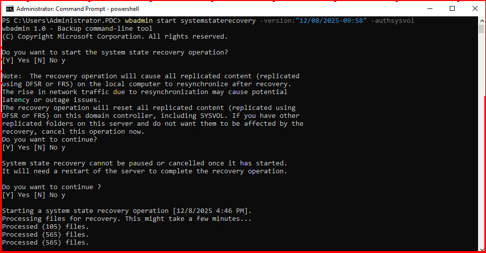 wbadmin start systemstaterecovery -version:”12/08/2025-09:58″ -authsysvol