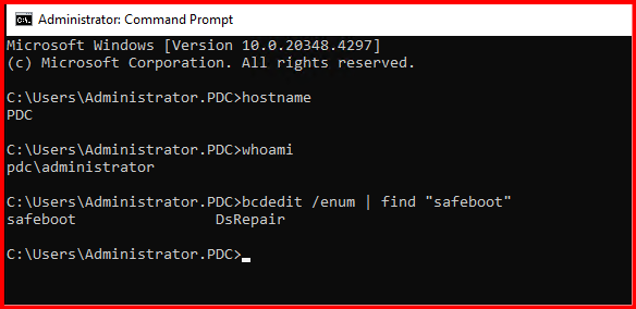 safeboot dsrepair, the server is configured to boot into DSRM.