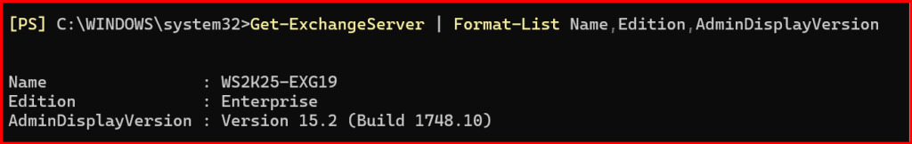 Get-ExchangeServer | Format-List Name,Edition,AdminDisplayVersion