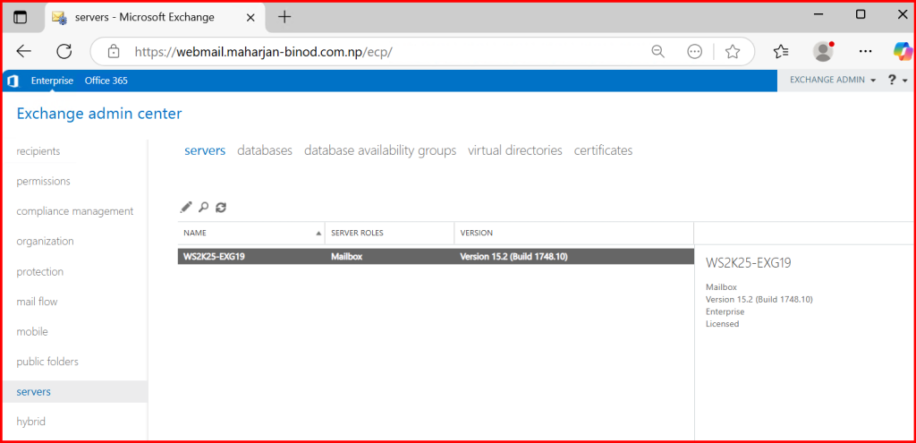 3. Open Exchange Admin Center (EAC): https://webmail.maharjan-binod.com.np/ecp