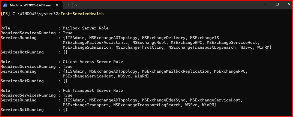 - Open Exchange Management Shell (EMS) and check Service Health, MailFlow & Database Status.