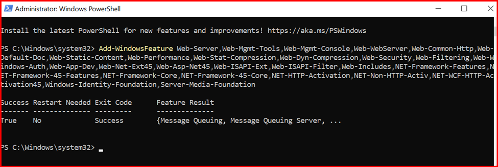 Add-WindowsFeature Web-Server,Web-Mgmt-Tools,Web-Mgmt-Console,Web-WebServer,Web-Common-Http,Web-Default-Doc,Web-Static-Content,Web-Performance,Web-Stat-Compression,Web-Dyn-Compression,Web-Security,Web-Filtering,Web-Windows-Auth,Web-App-Dev,Web-Net-Ext45,Web-Asp-Net45,Web-ISAPI-Ext,Web-ISAPI-Filter,Web-Includes,NET-Framework-Features,NET-Framework-45-Features,NET-Framework-Core,NET-Framework-45-Core,NET-HTTP-Activation,NET-Non-HTTP-Activ,NET-WCF-HTTP-Activation45,Windows-Identity-Foundation,Server-Media-Foundation
