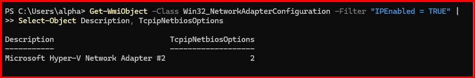 Write-Output “NetBIOS disabled on adapter: $($adapter.Description)”