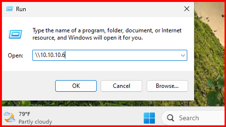 On the Windows workstation, access the UNC path \\10.10.10.6.