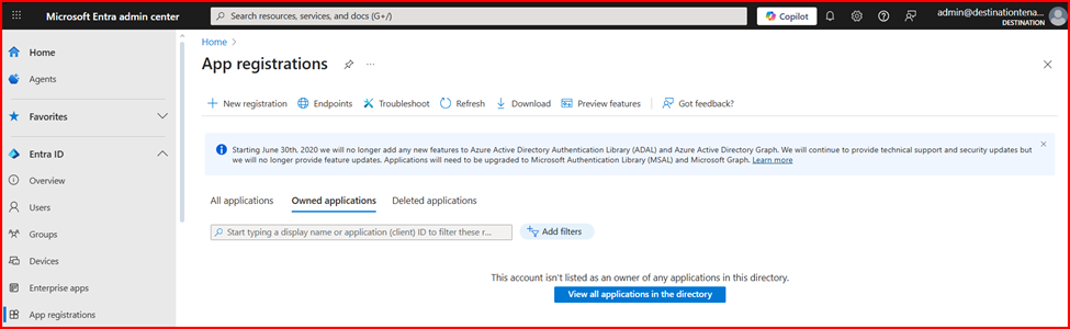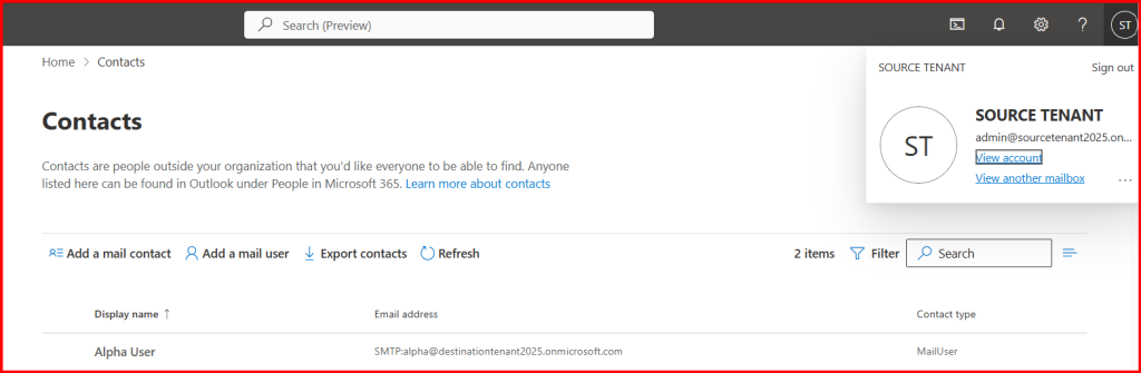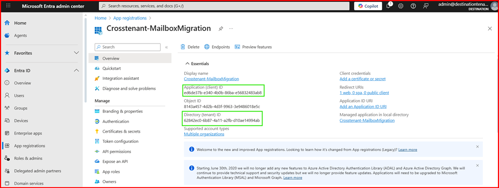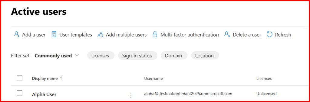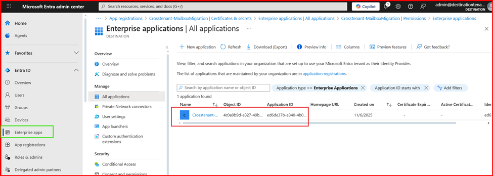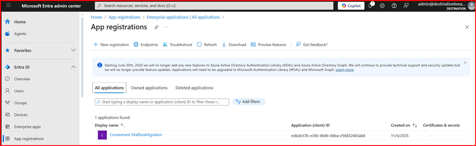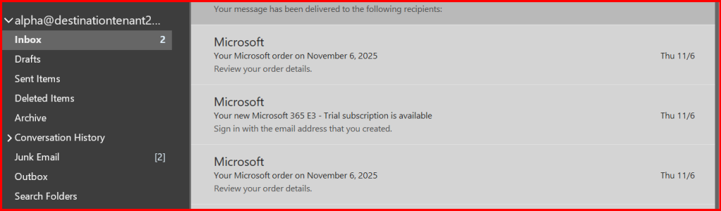 Tenant Name: destinationtenant2025.onmicrosoft.com