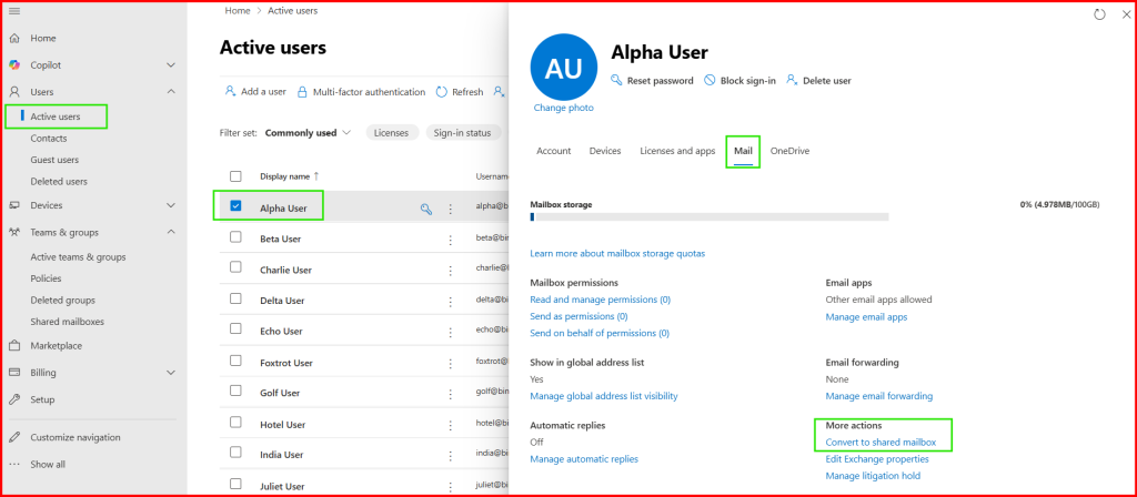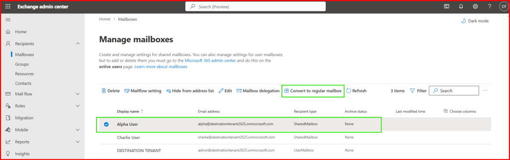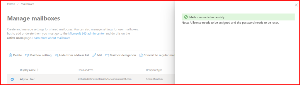 Step1: In source tenant, convert migrating user mailbox into shared mailbox.