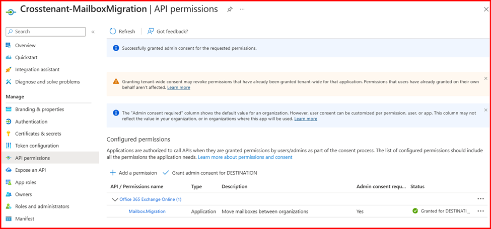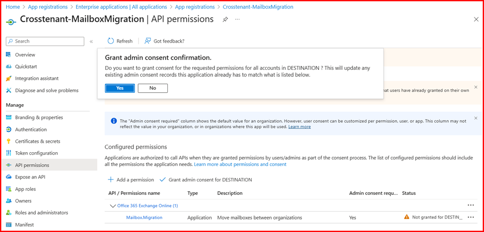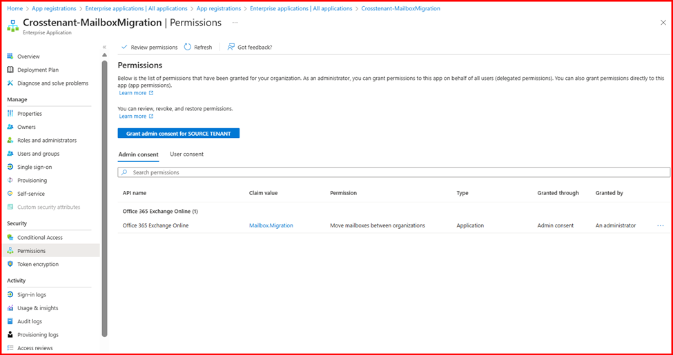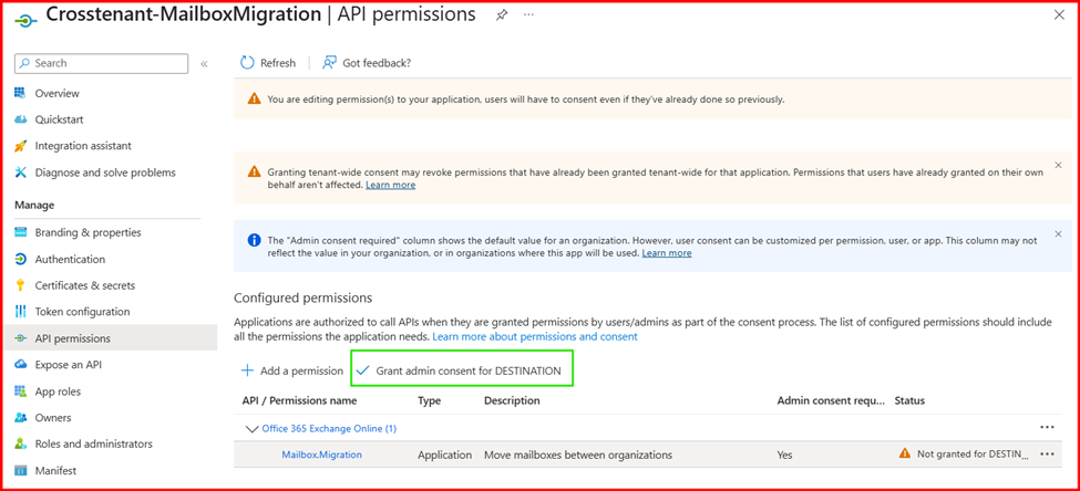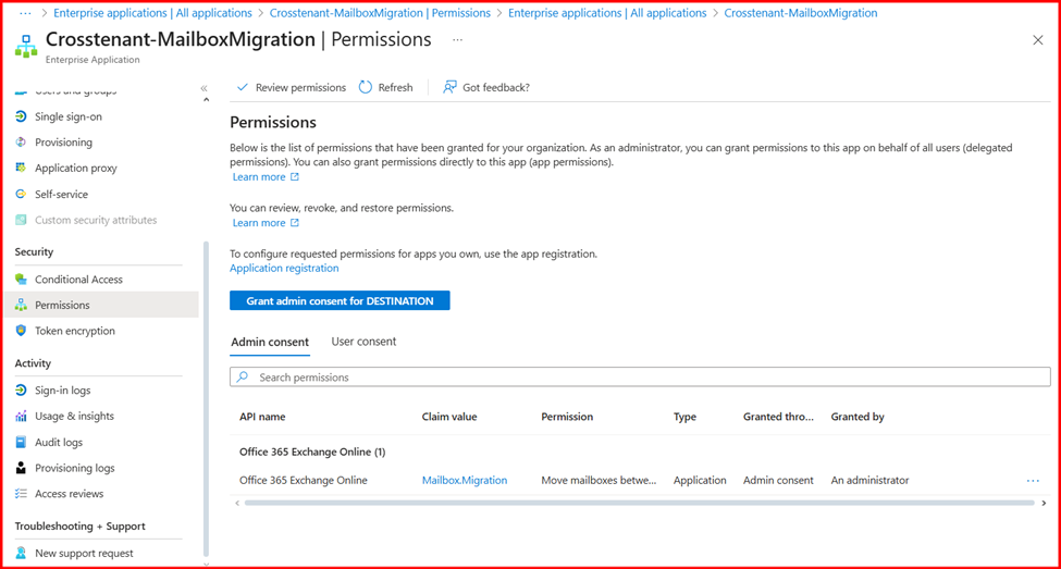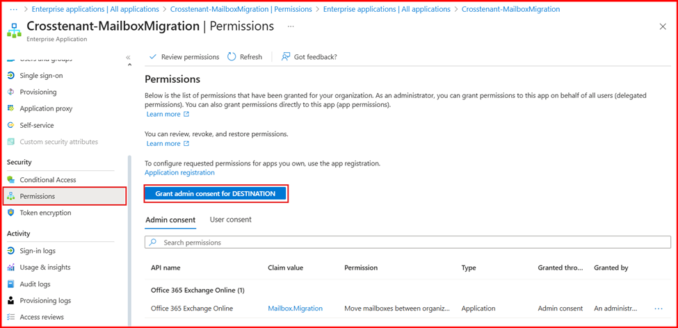 After creating the migration application and client secret, you must grant consent to the application. Follow these steps: