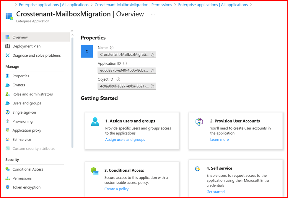 - On the Entra ID main page, go to Enterprise Applications and locate the application you created.