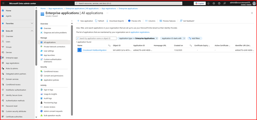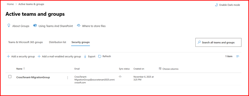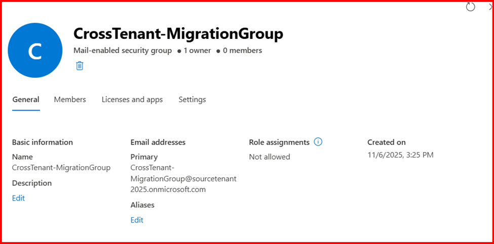 It is also recommended to have at least one mail-enabled security group in the source tenant. This group helps scope the migration to only the intended mailboxes, preventing any accidental transfers.
