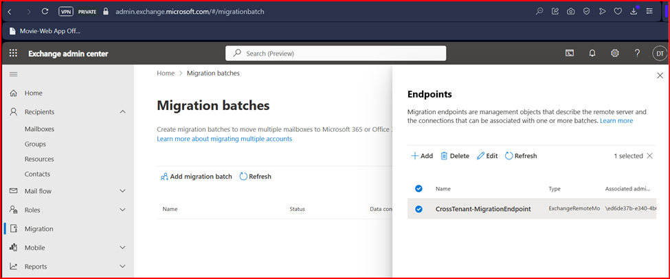 Task1: Create a new migration endpoint for cross-tenant mailbox moves